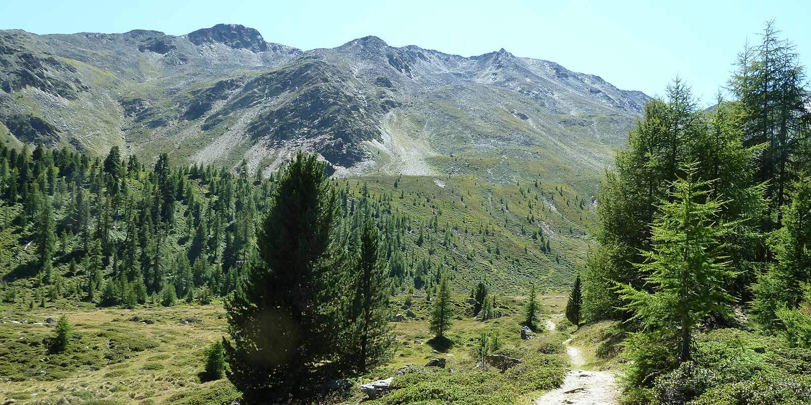 hay and the forest. The savoury scent of our local herbs and the moist aroma of tree bark permeates through the larch woodland. Weather-beaten farms greet you from the slopes and, high above them, pretty much 3,000m above them, the mountaintops look down on you gracefully. It’ll make you want to be up there. When you get out of the car, it’ll hit you… you’re finally here. It’s time to feel everything with your own hands – no – with your own feet, discovering what the hiking opportunities the Senales Valley has to offer in the summer.